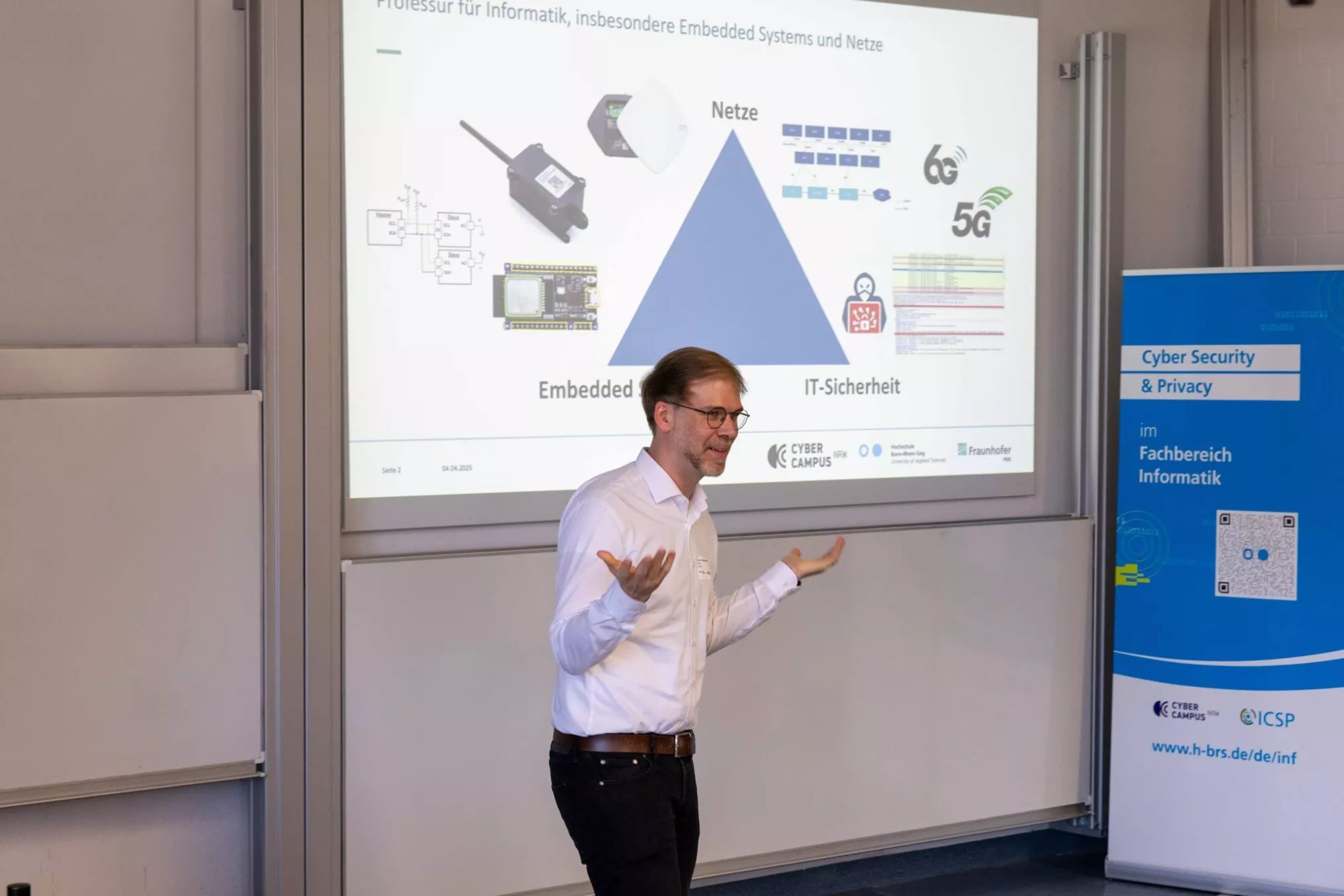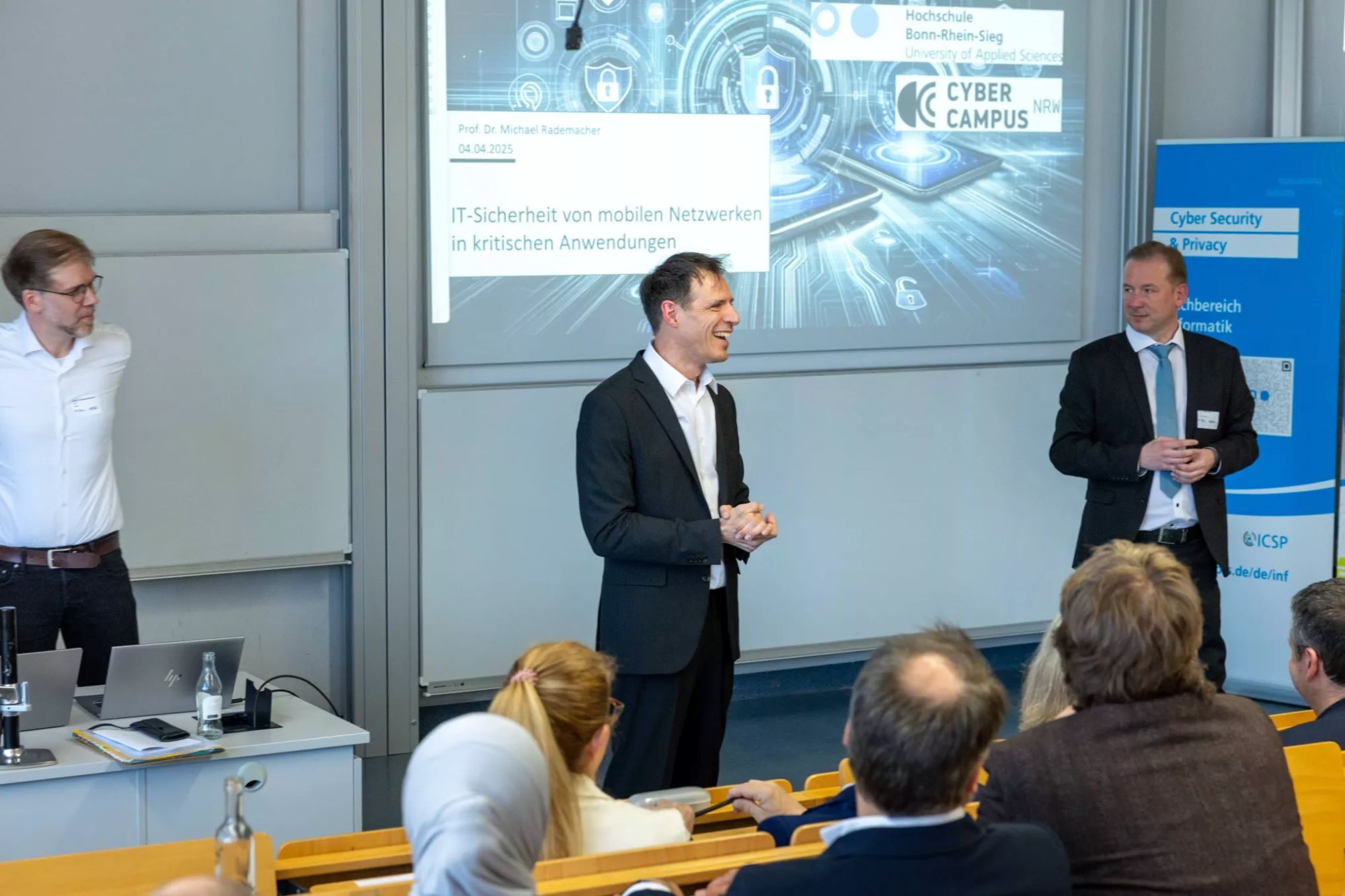 Die Hochschule Bonn-Rhein-Sieg (H-BRS) und die Hochschule Niederrhein arbeiten bei der Ausbildung von Fachkräften für die Cybersicherheit eng zusammen. Gemeinsam betreiben sie den Cyber Campus NRW, eine in dieser Form deutschlandweit einzigartige Ausbildungsstätte. Das zum ersten Mal ausgetragene „Cyber Campus NRW-Symposium“ in Sankt Augustin zeigte einmal mehr, dass der Handlungsbedarf auf dem Gebiet der digitalen Sicherheit groß ist – und dass innovative Forschung den Risiken etwas entgegenzusetzen hat.